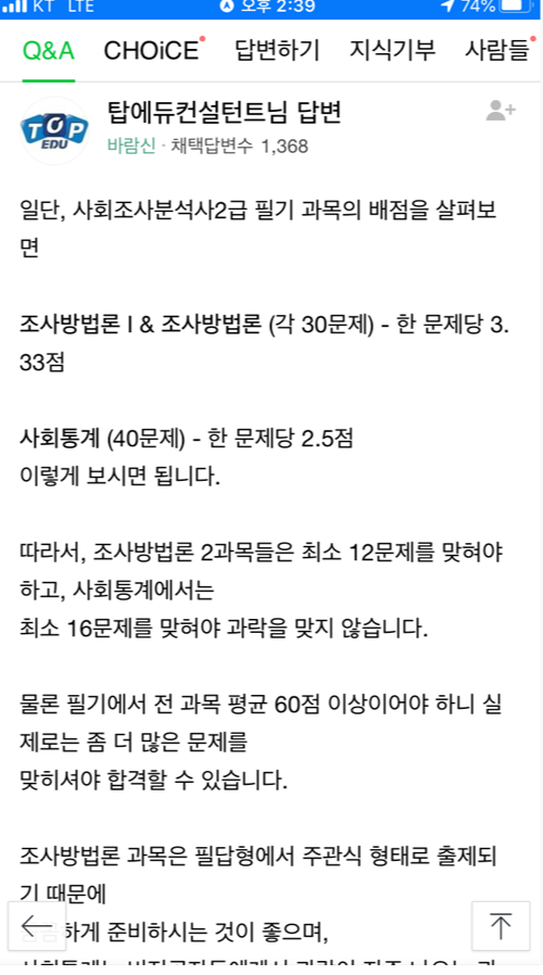 하지만 조금만 노력하면 이해하고 풀 수 있는 문제들이 있는데, 그것만 다 맞추고, 앞부분 조사방법론 1,2 과목에서 잘보면 된다.